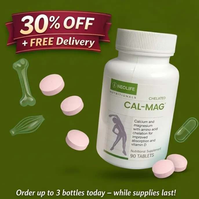 Unlike regular calcium tablets, Neolife Chelated Cal-Mag uses amino acid–bonded minerals for better absorption and gentler digestion — without the constipation.